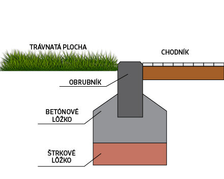 Betónový Parkový obrubník so skosením na spevnenie okrajov plôch vytvorených zo zámkových dlažieb a betónových dlaždíc.